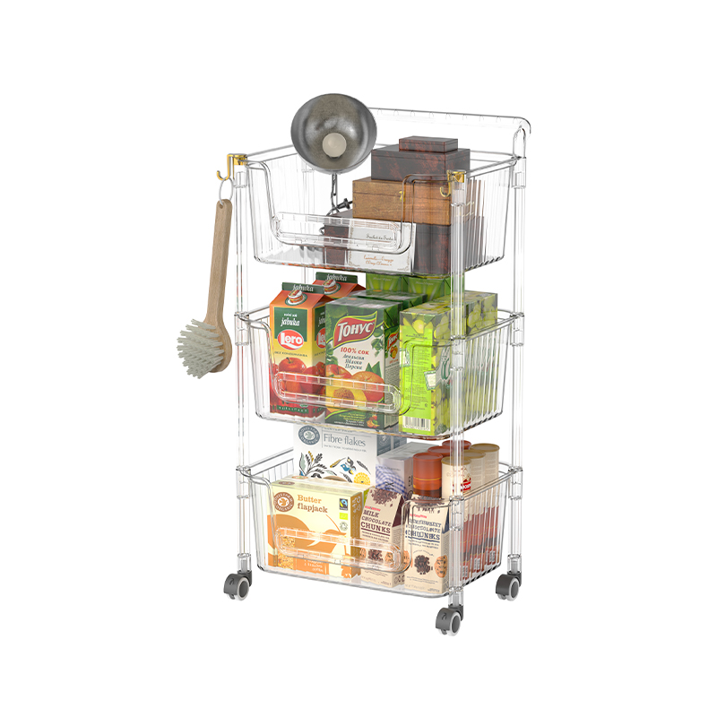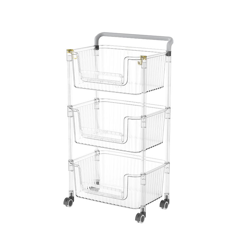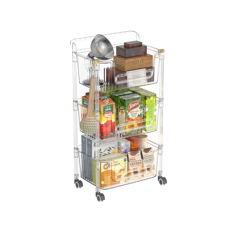 স্বচ্ছ ডিজাইন এই স্টোরেজ কার্টের একটি বৈশিষ্ট্য। স্বচ্ছ প্লাস্টিকের প্লেটগুলি প্রতিটি স্টোরেজ শেল্ফে রাখা আইটেমগুলি স্পষ্টভাবে প্রদর্শন করতে পারে, যা ব্যবহারকারীদের দ্রুত তাদের প্রয়োজনীয় আইটেমগুলি সন্ধান করতে দেয়, আইটেমগুলি সন্ধানের জন্য প্রয়োজনীয় সময় এবং শক্তি সংরক্ষণ করে। এটি এমন পরিস্থিতিতে গুরুত্বপূর্ণ যেখানে আইটেমগুলিতে দ্রুত অ্যাক্সেসের প্রয়োজন হয়, যেমন রান্নাঘরে মশলা এবং উপাদানগুলি সঞ্চয় করার জন্য, বা অফিসে নথি এবং অফিস সরবরাহ সঞ্চয় করার জন্য অফিসে। স্বচ্ছ ডিজাইনটি ভিজ্যুয়াল ঝরঝরেও বৃদ্ধি করে, সামগ্রিক স্থানটিকে আরও সুশৃঙ্খল দেখায়।